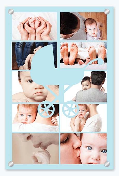 Sure, you can print this collage on canvas, but printing on glass provides that fresh feel, perfect for baby photos.
